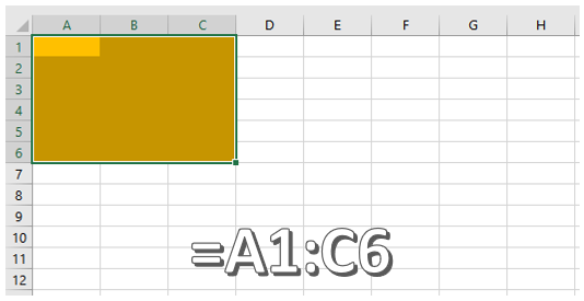 Para representar um intervalo continuo, basta colocar a primeira célula (mais a esquerda e mais acima), em seguida, dois-pontos ( : ), e depois a última célula do intervalo (mais a direita e mais abaixo). Veja os exemplos abaixo: