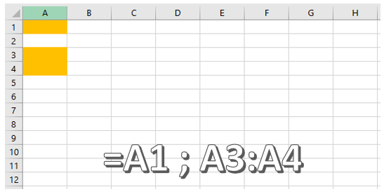 Para representar um intervalo não continuo, basta colocar as células do intervalo separadas por ponto-e-vírgula ( ; ). Veja os exemplos abaixo:
